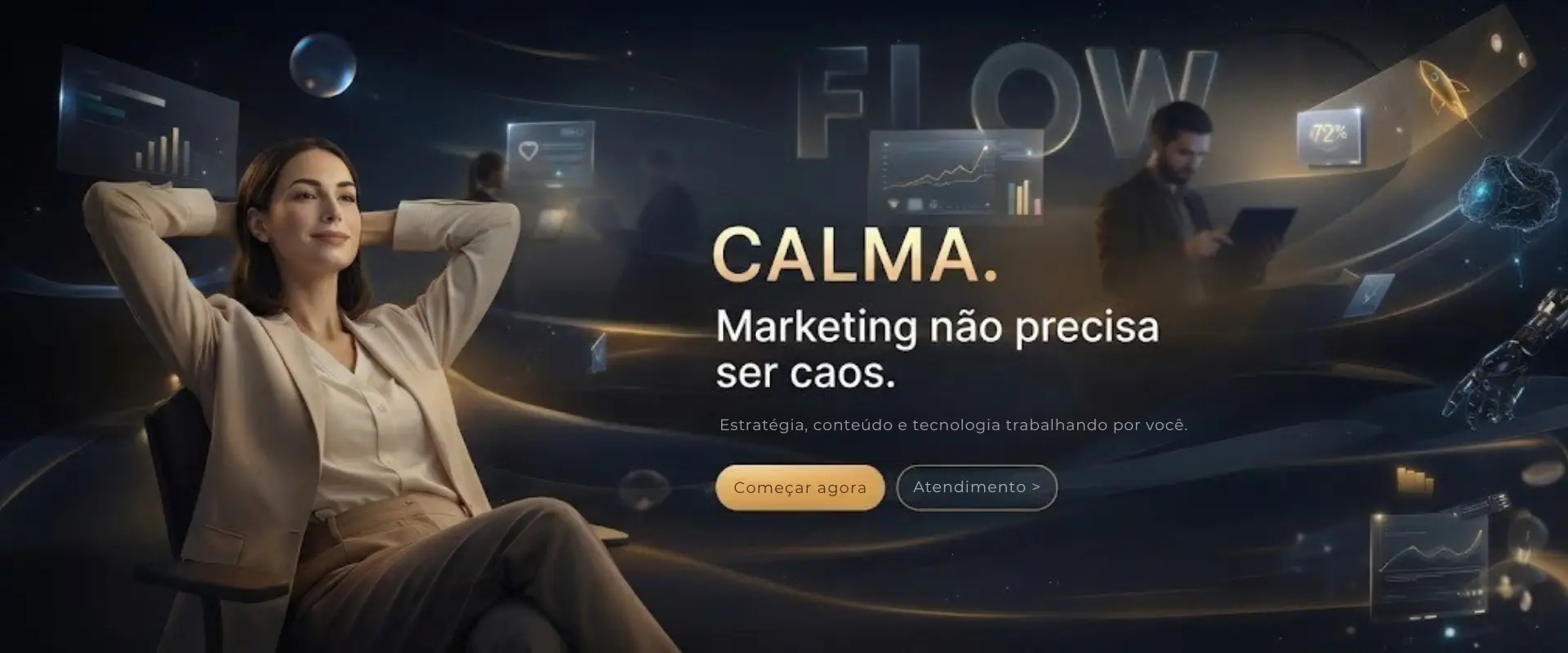 A gente entende o corre da rotina. Enquanto você toca o seu negócio, a Flow cuida da presença digital da sua marca com conteúdo, tráfego pago e campanhas que conectam e vendem, transformando criatividade em performance.